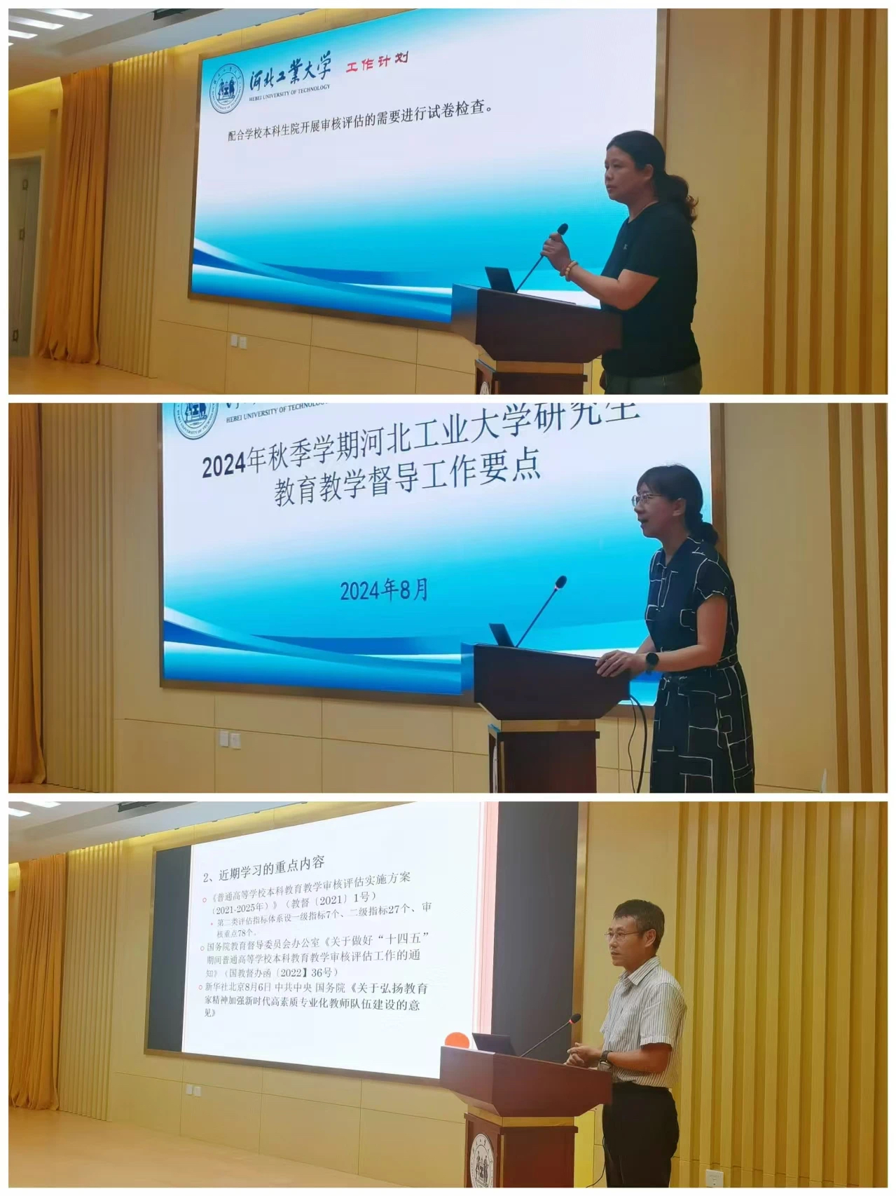 8月29日下午,河北工业大学2024年秋季学期教学督导委员会第一次工作会议在北辰校区会议服务中心第三会议室召开。学校党委书记韩旭出席会议并在讲话中强调,督导是学校的“宝”。会议由教学督导委员会主任王秀春主持,教学督导委员会全体委员参加会议。