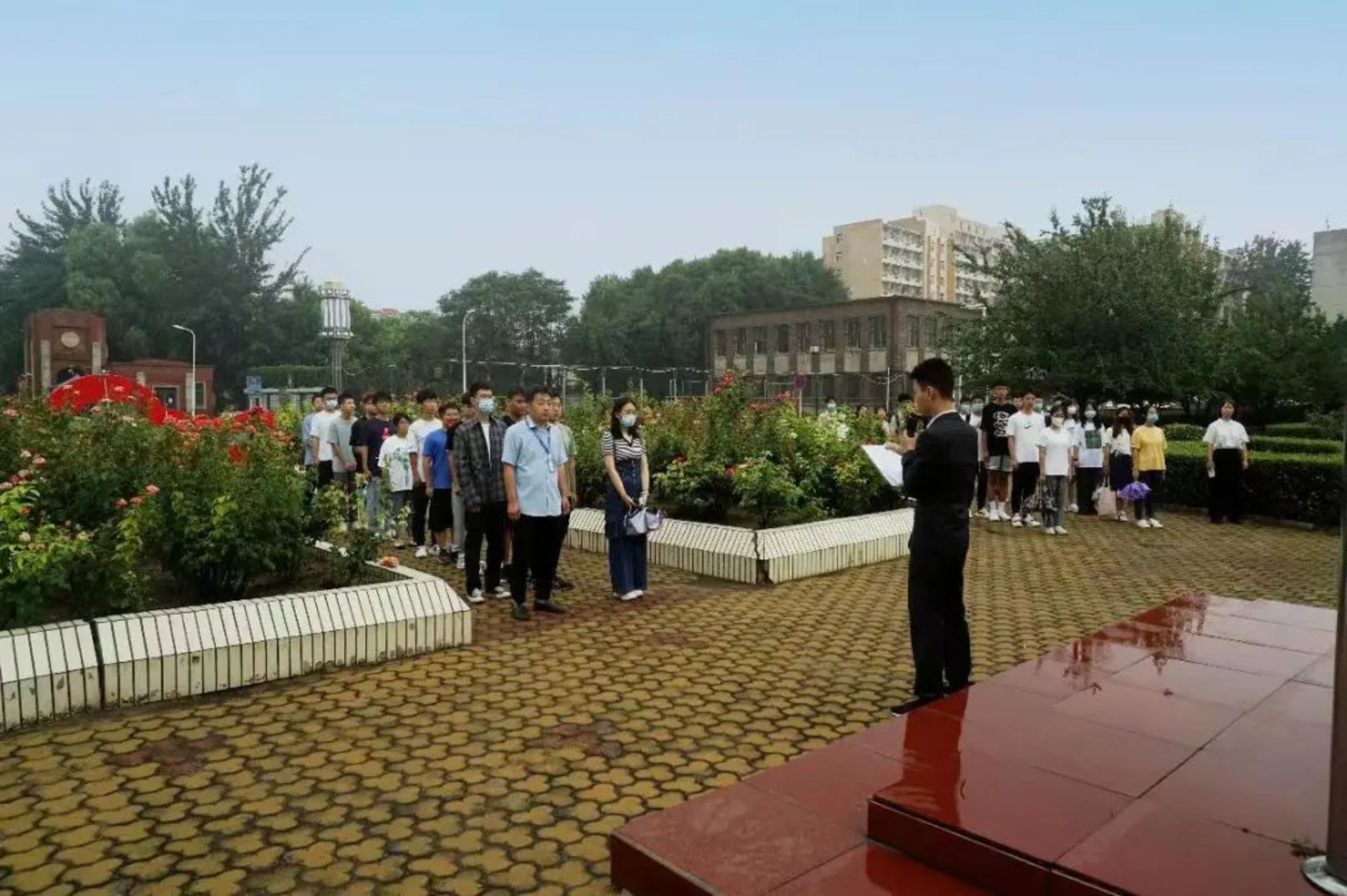 电气工程学院党委书记于明在北辰校区升旗仪式上发言,他赞扬了同学们在返校、住宿校区调整过程中表现出的积极配合、互帮互助、团结一心。他指出,爱国、爱校不是一句空话,需要同学们有坚定的信念、高尚的情操、过硬的本领和强健的体魄。要把伟大的抗疫精神转化为热爱祖国、热爱学校的满腔热情,转化为努力学习、奋发有为的实际行动,学好每一门课,做好每一件事,做更好的自己。