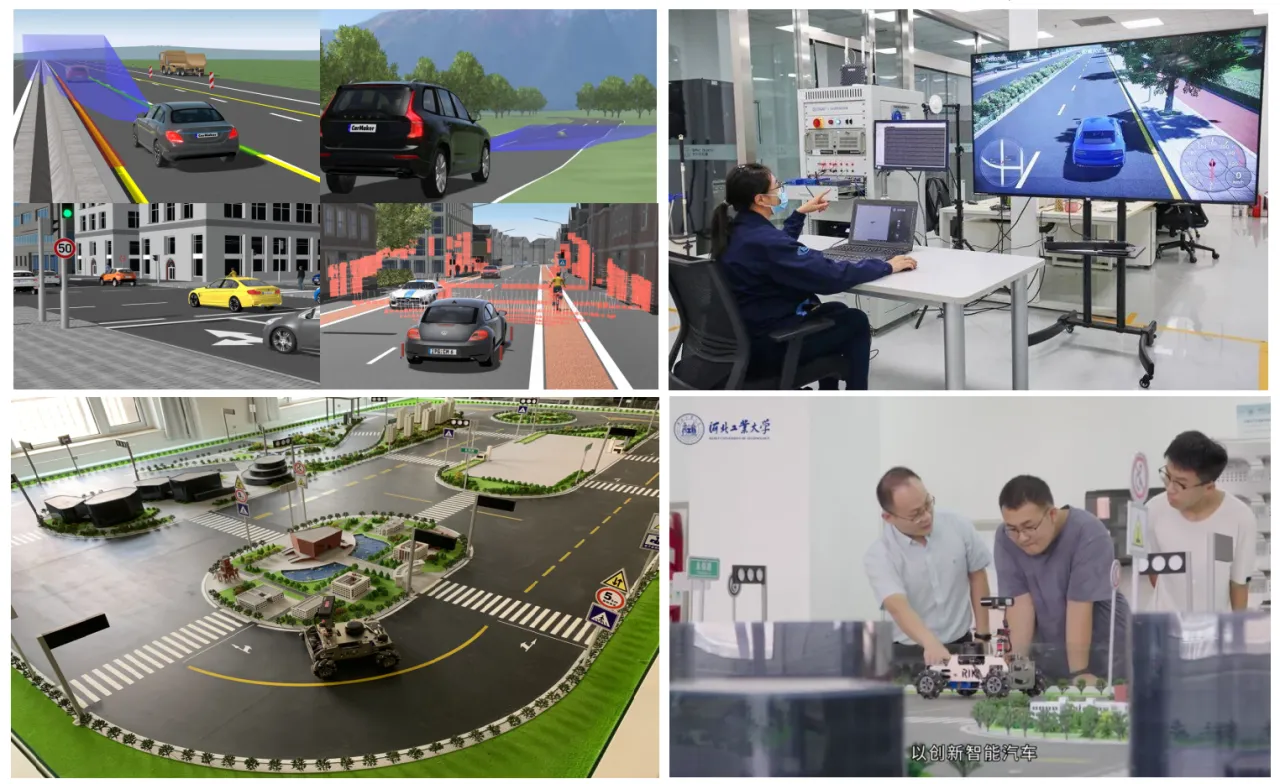 基于专业数智化建设需求,与中国汽车技术研究中心、长城汽车股份有限公司深度合作,建设校企共享多翼教学资源,共创多域实践教学平台,打造了“智能驾驶虚拟仿真实验室”“实景交互智能交通沙盘”“智能网联汽车示范校区”三位一体的智慧实践教学平台,有效地解决了专业人才培养中实践场景少、实操难等问题。