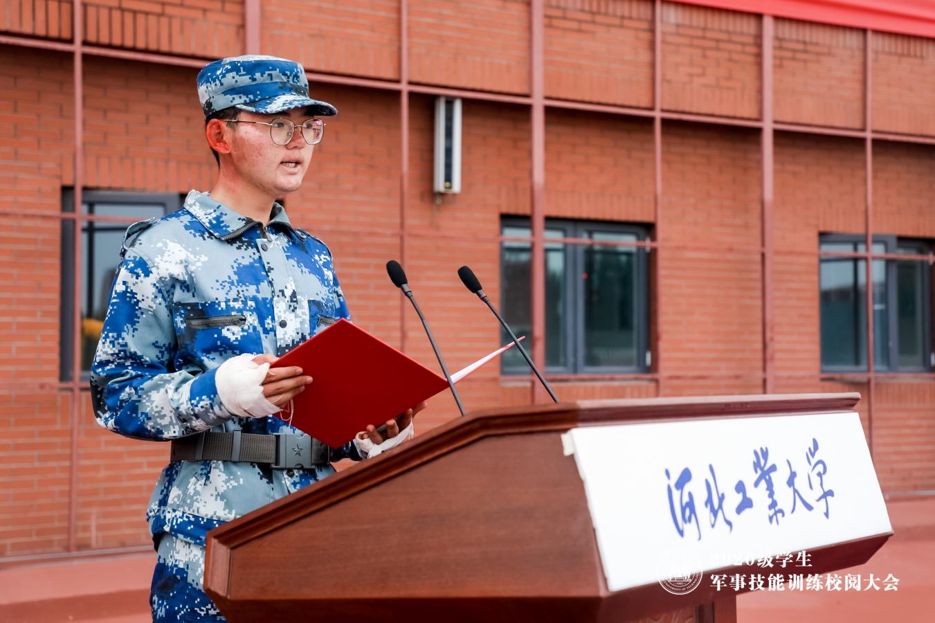 材料科学与工程学院学生施政作为2020级北辰校区参训学生代表发言。他说,经过军训的洗礼,我们在接下来的学习和生活中当以一名军人的标准要求自己,践行“强国有我”,阔步迈向未来!军训教官代表宋治昊表示,战友们自参加集训以来,精心组织、刻苦训练,在今后的学习生活中会一直严格要求自己,不忘初心,砥砺前行。