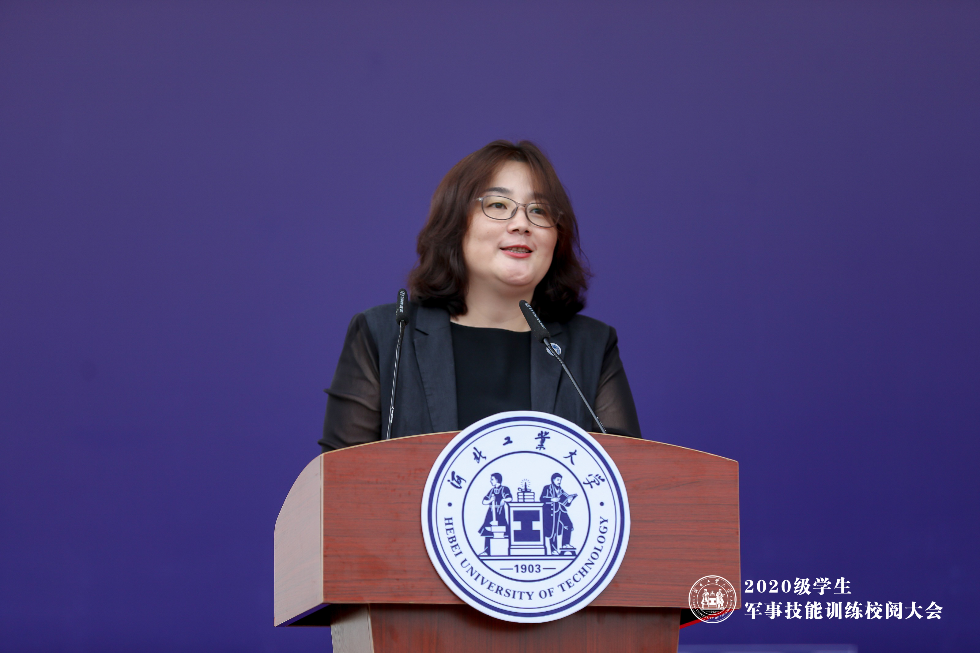 发布日期:2021-09-04 作者:学生教育中心 访问量: 9月4日下午,河北工业大学2020级学生军事技能训练校阅大会在红桥校区东院操场与北辰校区体育中心相继举行。天津市红桥区人民武装部部长马哲大校,校党委常委、副校长段国林,副校长郎利影,武警某部首长,天津警备区学生军训工作办公室参谋张元哲上尉出席大会。学校办公室、党委宣传部、校团委、党委本科生工作部/本科生院、安全工作处(部)、学生服务中心、后勤服务中心、体育部负责同志,各学院负责同志,2020级辅导员和全体受训学生参加了此次大会。大会由本科生院副院长韩永主持。