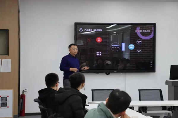 在后面的师生交流中,张曦代表公司面向学生进行了宣讲,向同学们介绍了公司的基本情况、企业文化及招聘要求,并强调公司是人工智能领域以销售、生产于一体的高新技术企业,描绘了未来公司在人工智能方面的发展趋势。