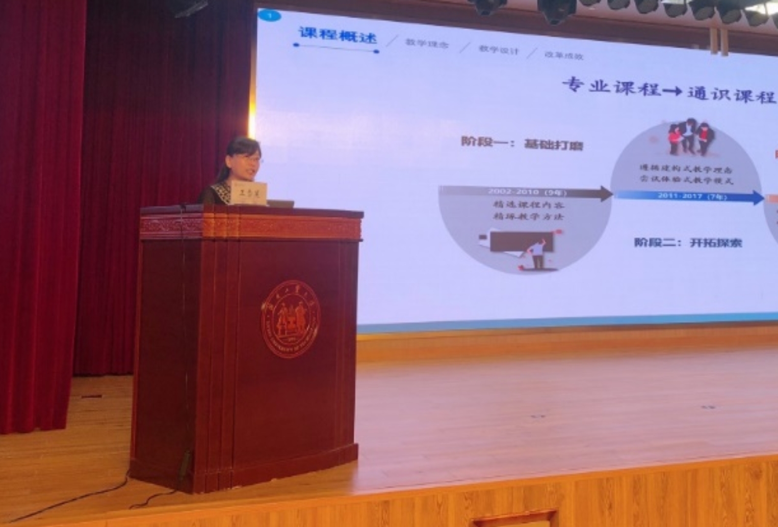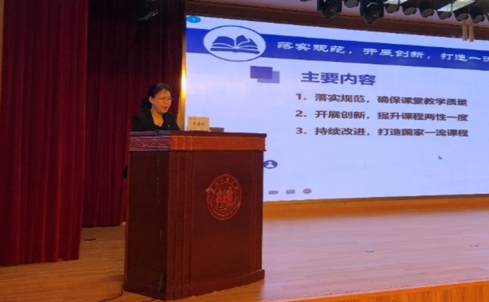 王宝珠是省级教学名师,我校首批元光教学名师、国家级一流课程负责人。她所做报告《落实规范,开展创新,打造一流》,从落实规范、确保课堂教学质量,开展创新、提升课程两性一度,持续改进、打造国家一流课程三个方面层层深入,为课堂教学质量提升指明了方向和路径。