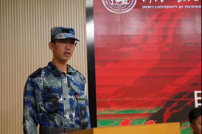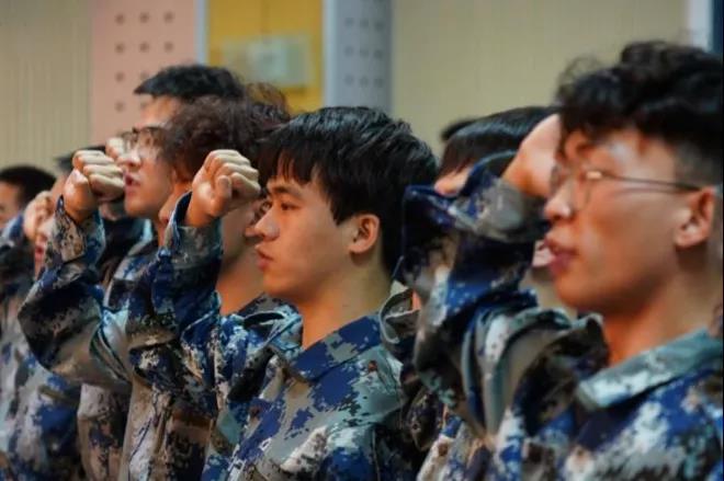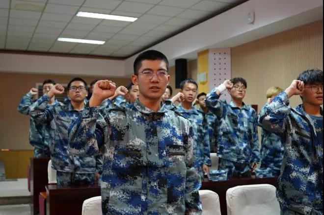电气ST201班张一诺同学代表芬兰校区2020级全体参训学生发言并带领全体参训学生庄严宣誓:服从命令,听从指挥;恪守纪律,尊重教官;刻苦训练,不怕困难;磨砺意志,为校争光;秉承勤慎公忠校训,赓续百年红色校史;练就军人铮铮傲骨,争做军政训练标兵!