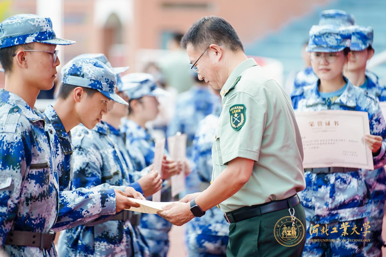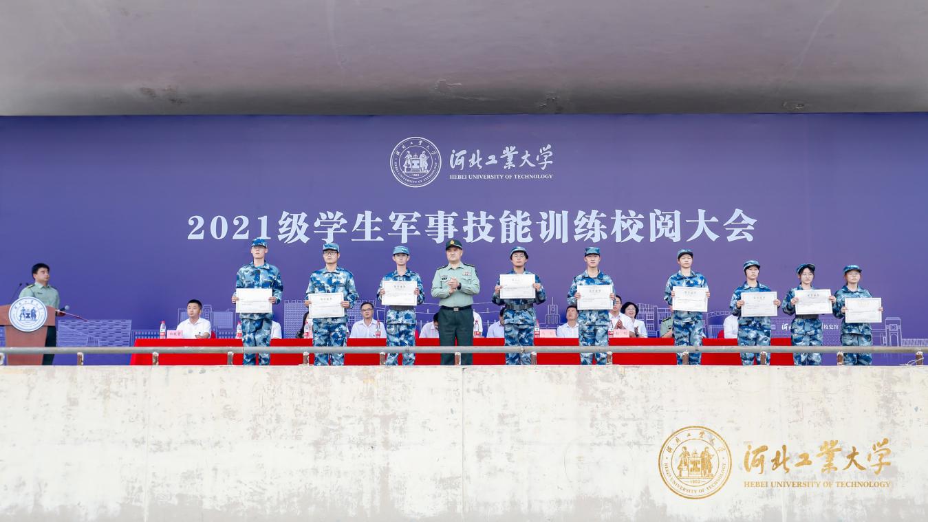 随后,2021级军训内务整理优秀宿舍代表、2021级军训优秀标兵代表、2021级学生军训教官团、2021级河北工业大学学生军训工作先进单位代表依次上台领奖。