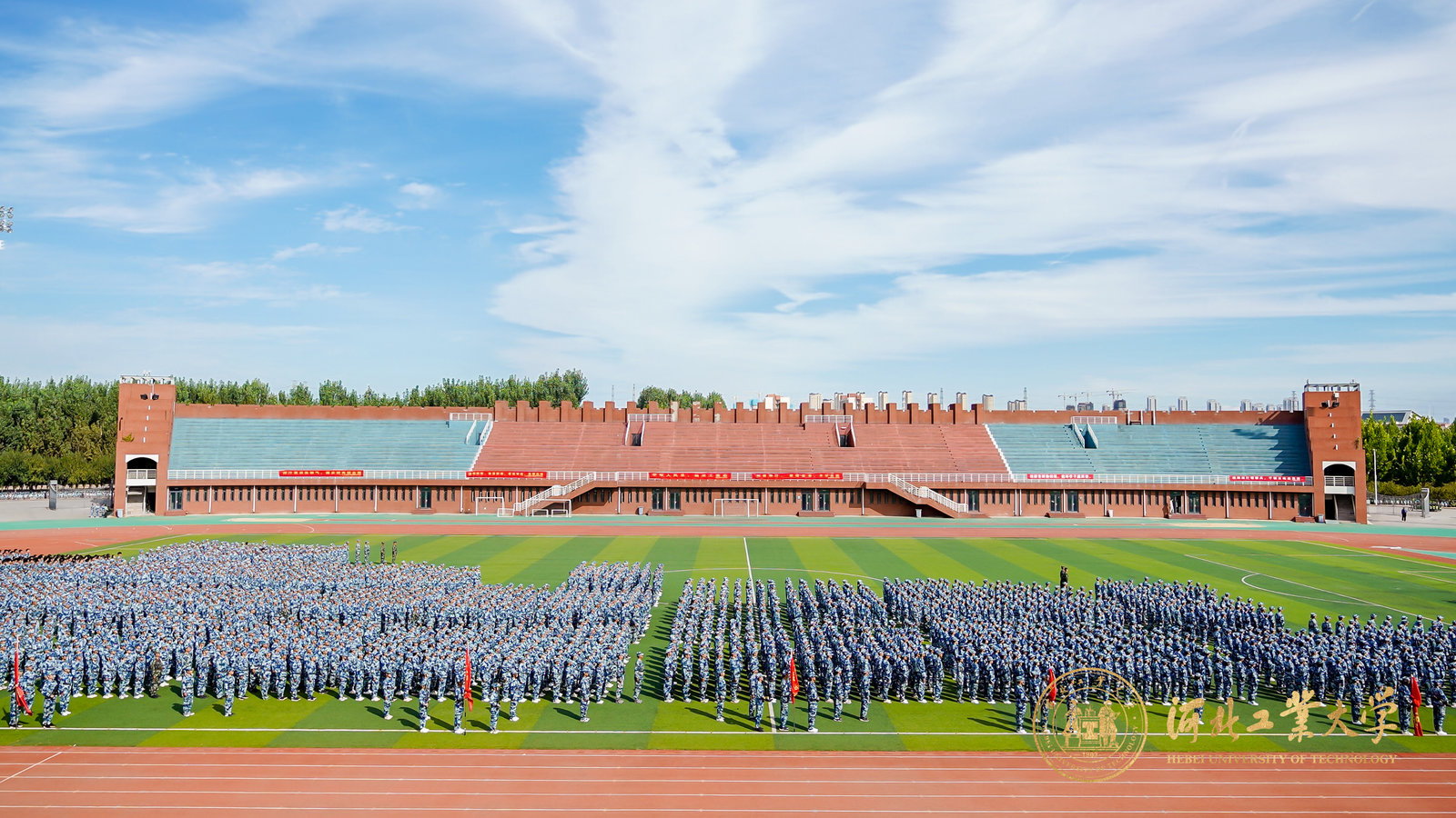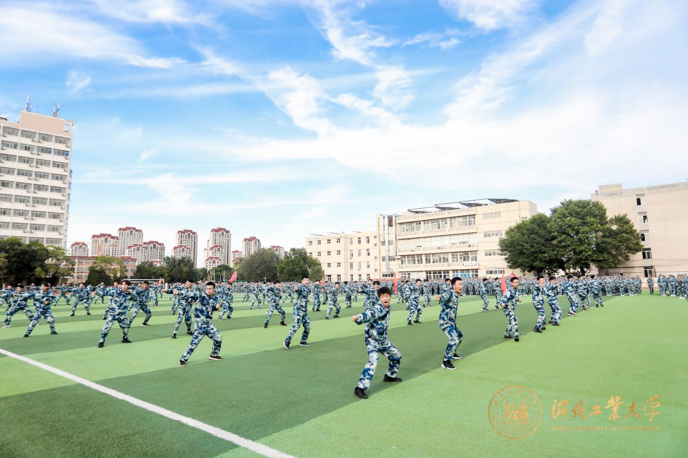 发布日期:2021-09-17 作者:学生教育中心 访问量:金秋送爽,丹桂飘香。9月17日下午,河北工业大学2021级学生军事技能训练校阅大会在北辰校区体育中心与红桥校区东院操场相继举行。天津市红桥区人民武装部部长马哲大校,校党委常委、副校长段国林出席大会。学校办公室、党委宣传部、校团委、党委本科生工作部/本科生院/武装部、安全工作处(部)、学生服务中心、后勤服务中心以及各学院负责同志,2021级辅导员和全体受训学生参加了此次大会。大会由本科生院副院长韩永主持。